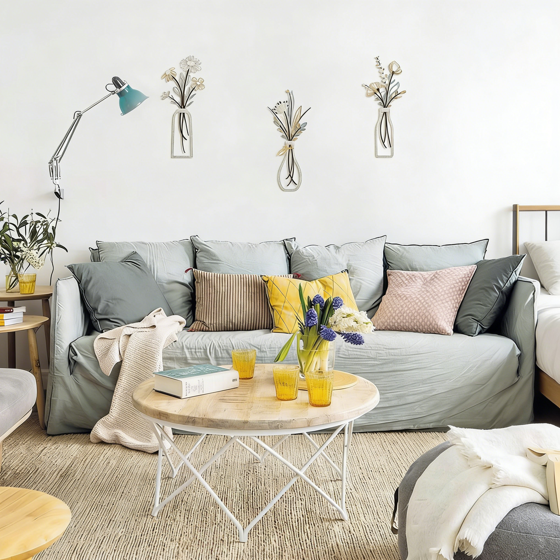 - Set of 3 Coordinated Pieces: Three distinct vase-flower designs (13.7" tall × 6" wide each) for a cohesive, eye-catching wall display.
