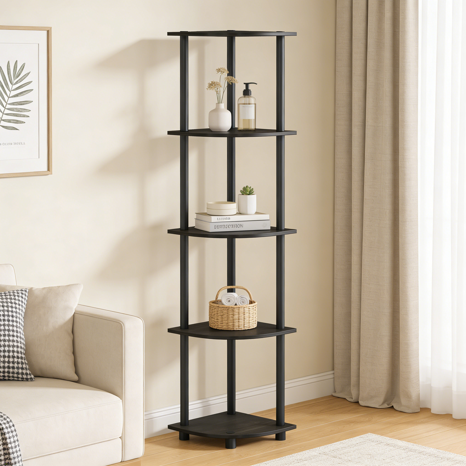 - 5-Tier Vertical Storage: Tall, narrow design (57.7" height) maximizes corner space, offering 5 open shelves for books, decor, toiletries, and kitchenware.