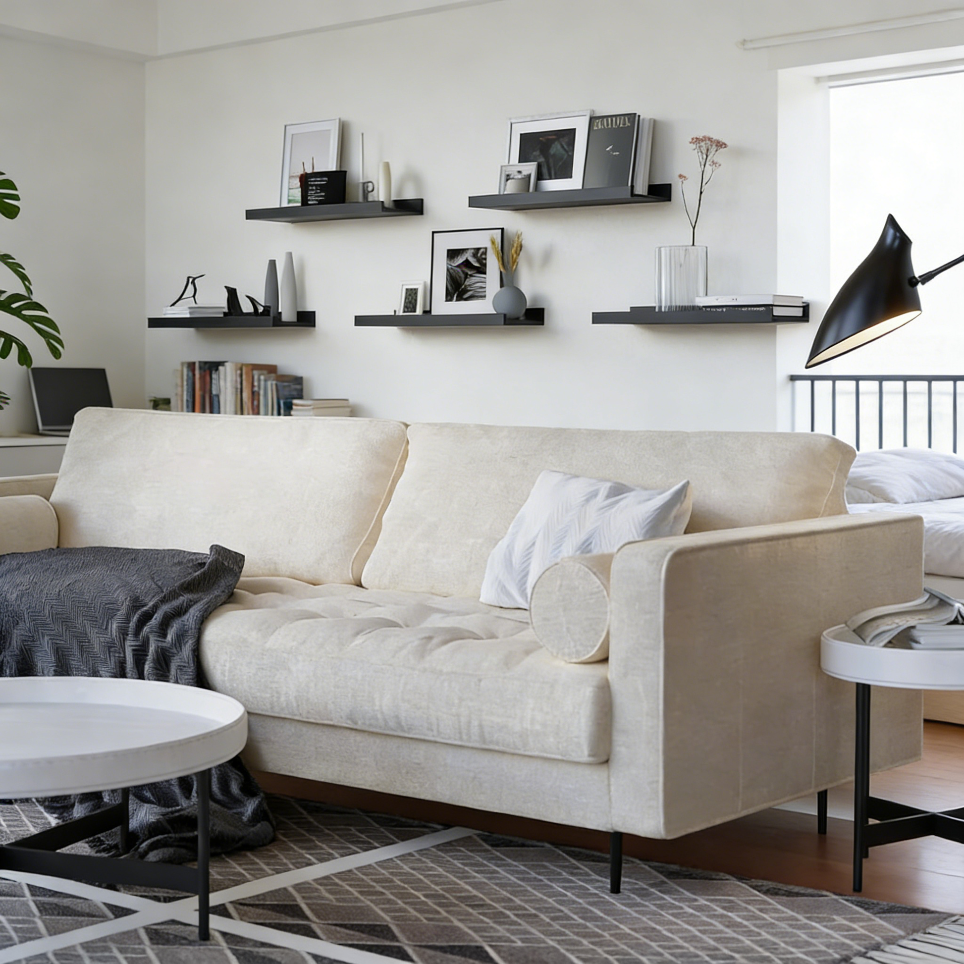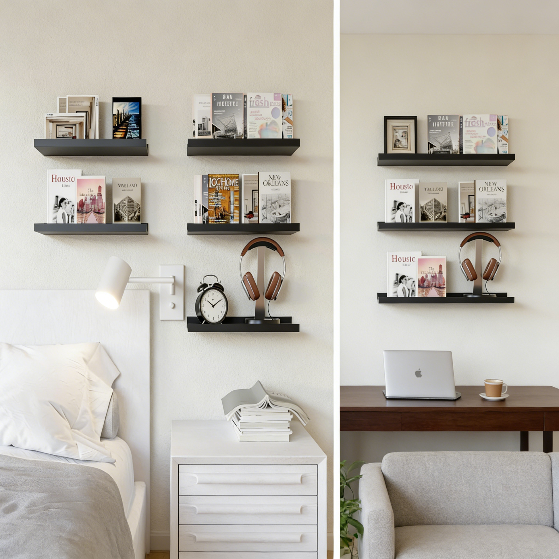 - Anti-Drop Front Lip Design: Features a raised front edge to prevent items from slipping off, keeping books, decor, and small objects secure.